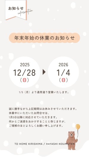 TDホーム霧島(有)林工務店では、誠に勝手ながら